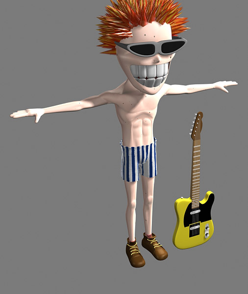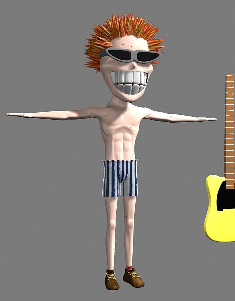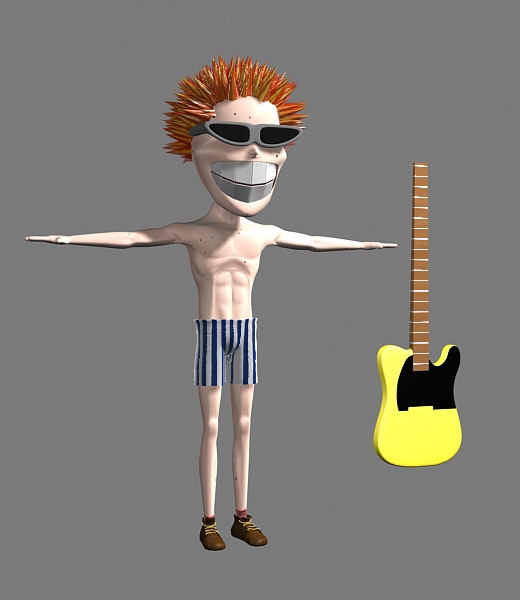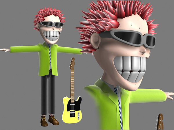 Me mola. ¿Podrías hacer que las gafas no se deformen conforme lo hace la cara? La guitarra está bien, teniendo en cuenta que el personaje es una caricatura. De lo contrario debería ser un poco más alargada, creo. Pero yo la dejaría como esta. Saludos.