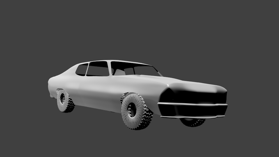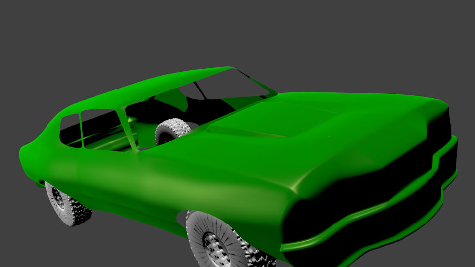La rueda tiene problemas en las normales, pueden ser que estén invertidas o hayan dos caras ocupando el mismo lugar, si es el primero selecciona todas las caras en modo edición y presiona Control + N, a la chapa te recomiendo darle un modificador Solidify para darle más volumen y partes como las cubiertas no se vean tan planas.