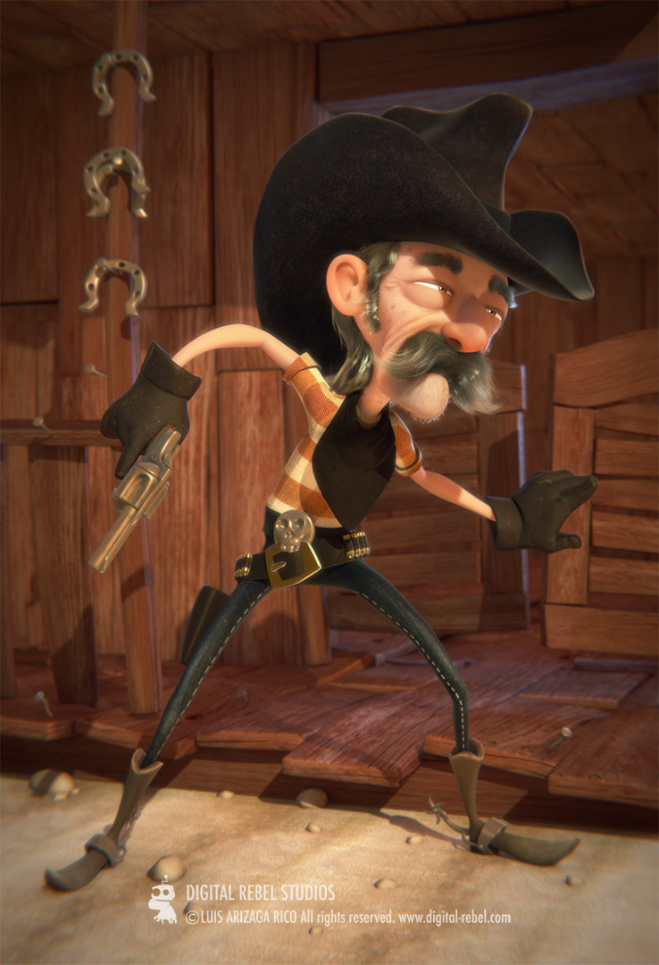 El 1º una ilustración en 3d, que presenta a un viejo cowboy ideado para proyectos de animación. Cualquier comentario o pregunta a cerca del personaje, o de cómo se ha hecho, podéis hacerla aquí libremente. Espero que os guste.