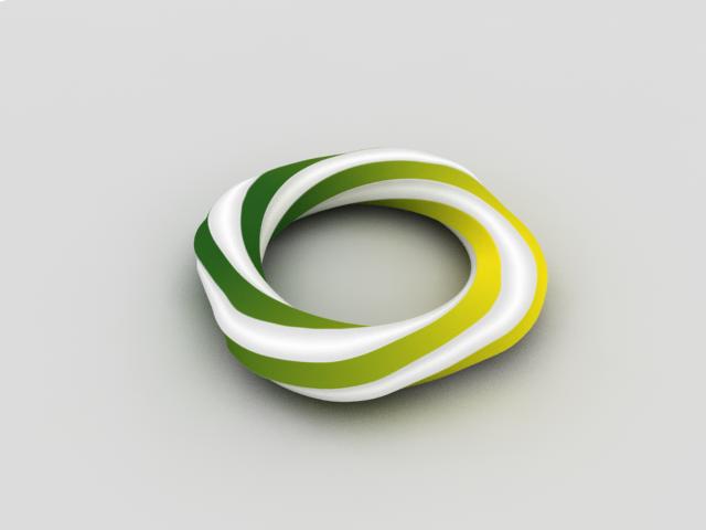 Después un modificador de twist con un ángulo de 360grados para retorcer y después un modificador bend con 360grados en z para convertirlo en anillo.