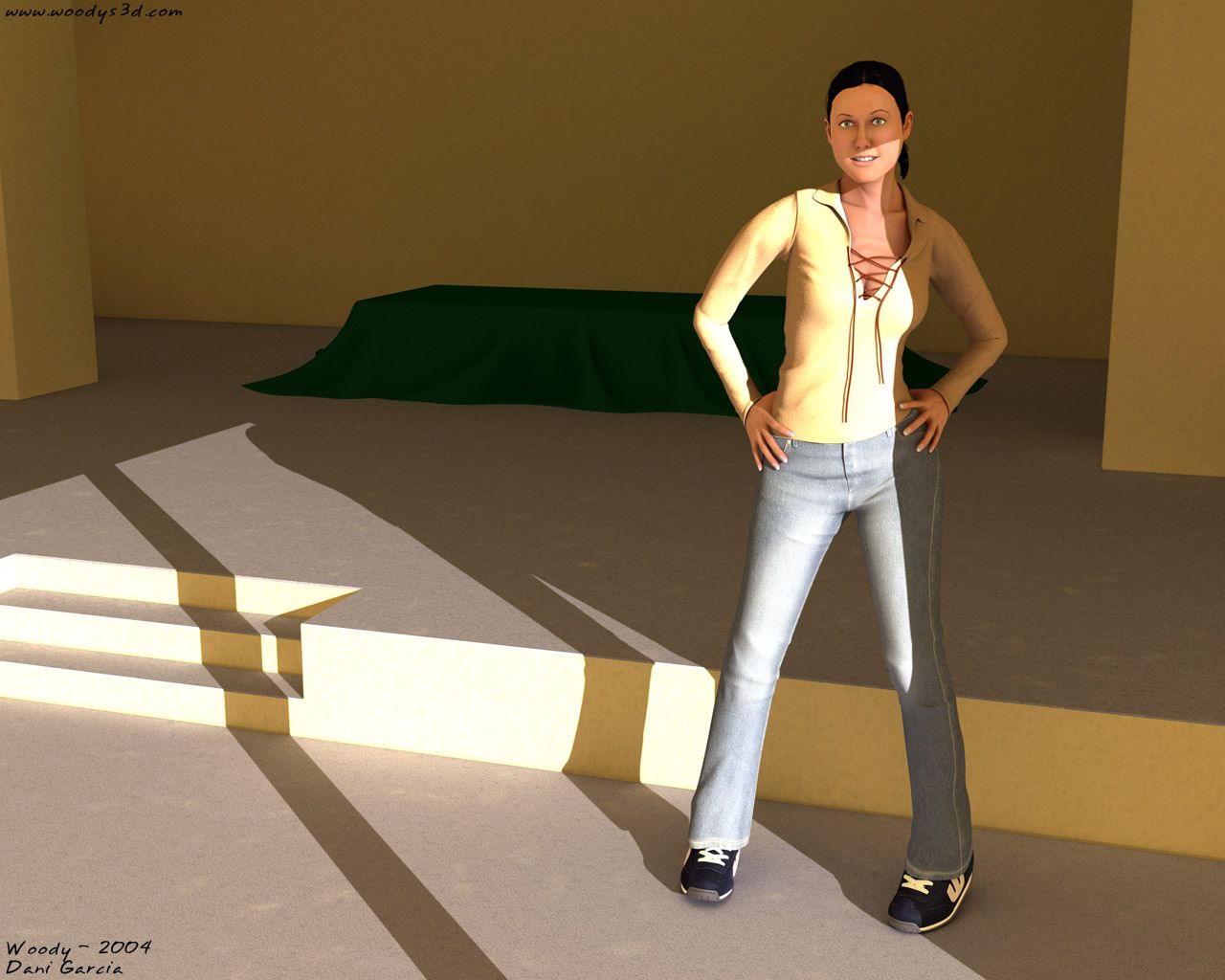 La idea fue crear un personaje con el rigging completo, con todas las capas de ropa y tan realista como fuera posible. Para cohesionar las imágenes cree un set muy simple e hice algo parecido a un libro para una modelo.