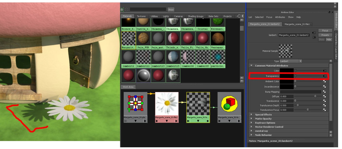 Hola a todos. Tengo un problema. Hice un material y le apliqué la textura en al nodo transparency, con el canal alfa en negro. La textura se ve bien en el render, pero también me aparece la sombra de toda la textura, incluido lo que queda fuera del canal alfa, ¿cómo se ve en la imagen.