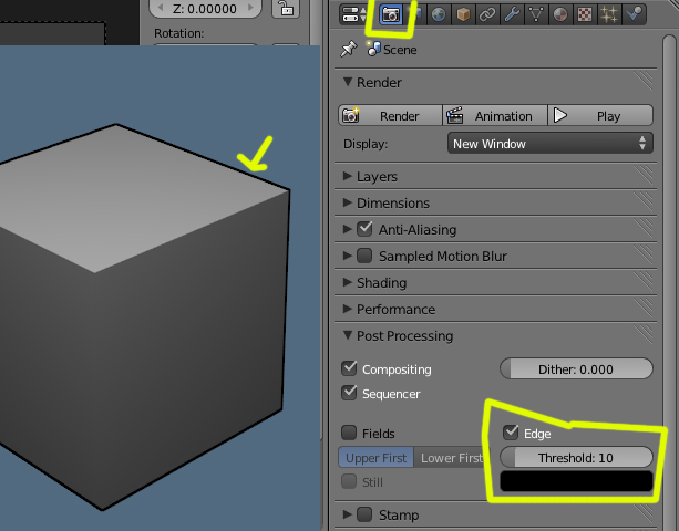 Y si lo que buscas es solo un contorno de la figura, hay el edge. Se activa desde render > mensaje processing > edge.