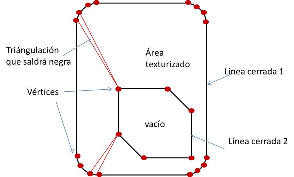 El problema: a veces, más veces de las que quisiera, cuando hago esto de usar las líneas, a la hora de aplicar un material digamos pasto y renderizar, me aparecen triángulos negros, esto se presenta más cuando muevo algún(os) vértice (s) en el eje Z para dar alguna pendiente, pero también se me presenta (ocasionalmente) estando todos los vértices alineados en eje Z.