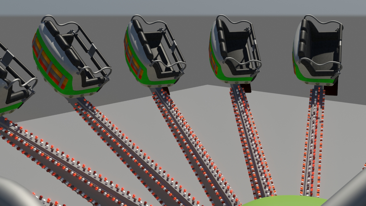 Realmente la atracción la tengo prácticamente terminada de texturizado y modelado, pero voy poniendo renders algo más antiguos, ya que estuve liado con el Rig y no pude ir subiendo a tiempo, supongo que, a mediados de la semana que viene actualizaré con la atracción prácticamente terminada, y un vídeo enseñando el rig. Gracias por el comentario, un saludo.