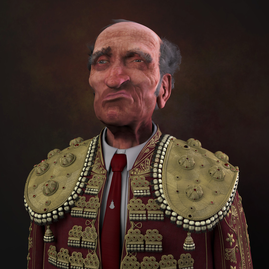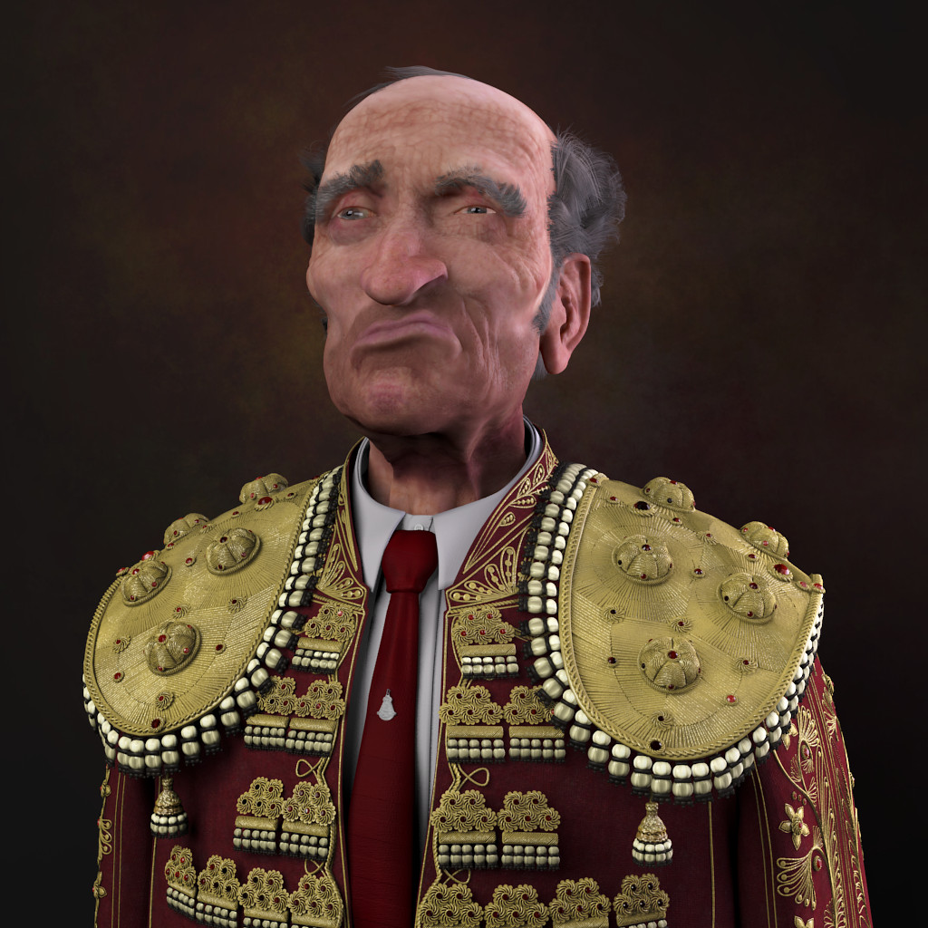 Está hecho todo en Blender, con unos toques de Gimp. Se trata de un torero acabado recordando sus días de gloria.