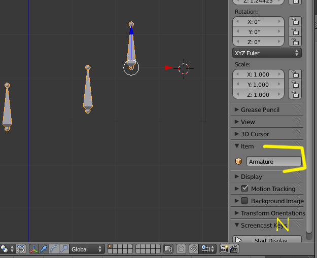 Archivo adjunto 177446tanto los objetos como las armatures actúan de la siguiente manera, cuando mueves el objeto en modo objeto (object mode) el -origin- Se mueve con él, pero si lo mueves estando en modo edición (Edit Mode) el -origin- Queda quieto mientras mueves la armature (u objeto), que lío, no, pues para liarlo más, te voy a decir la forma de colocar el -origin- En el sitio que tú quieras, si, por ejemplo, quieres poner el origin en algún punto en concreto de la armature lo puedes hacer manualmente y si quieres con la ayuda del Snap, el Snap aparece cuando presionas shift+s y sale una lista de opciones, vamos a poner un ejemplo simple para que lo entiendas, imagina que quieres el origin, justo entre los dos ejes de las piernas.