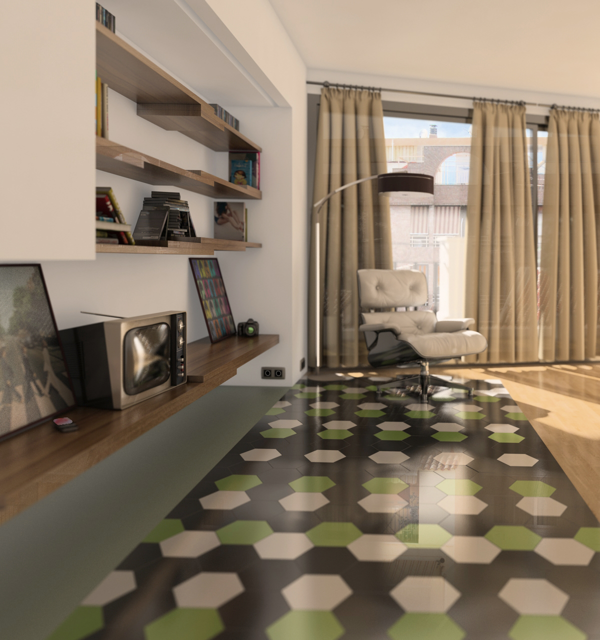 Un interior más, hecho esta mañana, una prueba de un sencillo ambiente para un arquitecto de la zona. A ver qué os parece.