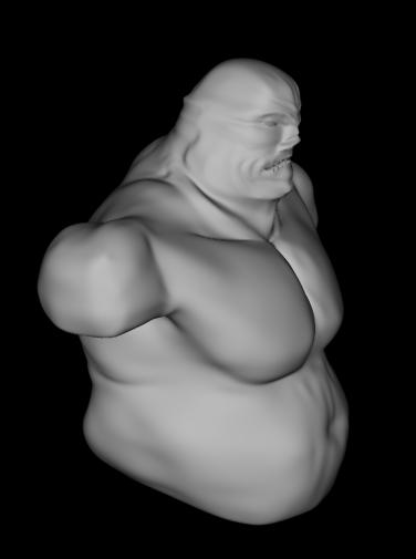 Con esa agresividad no creo que tengas muchas respuestas y menos cordiales o productivas. ¿las arrugas y deformidades de la cara del personaje también las viste en fotografías de obesos? Si es realista para la barriga debería serlo también para la cara ¿no?