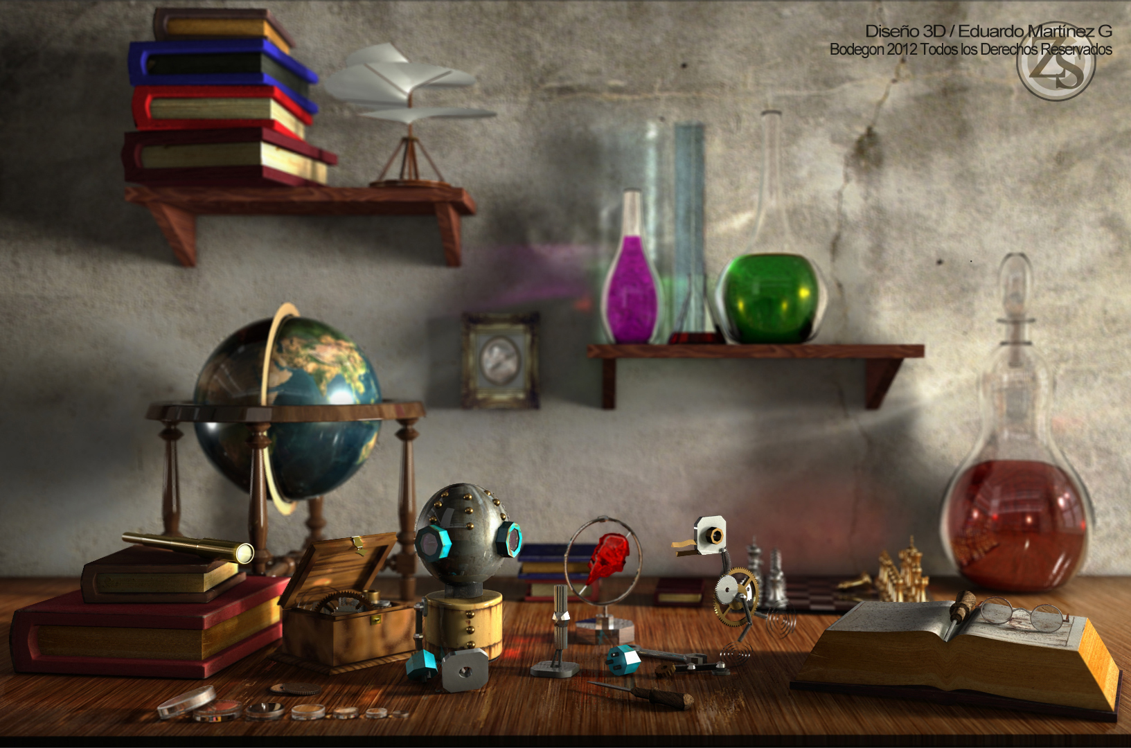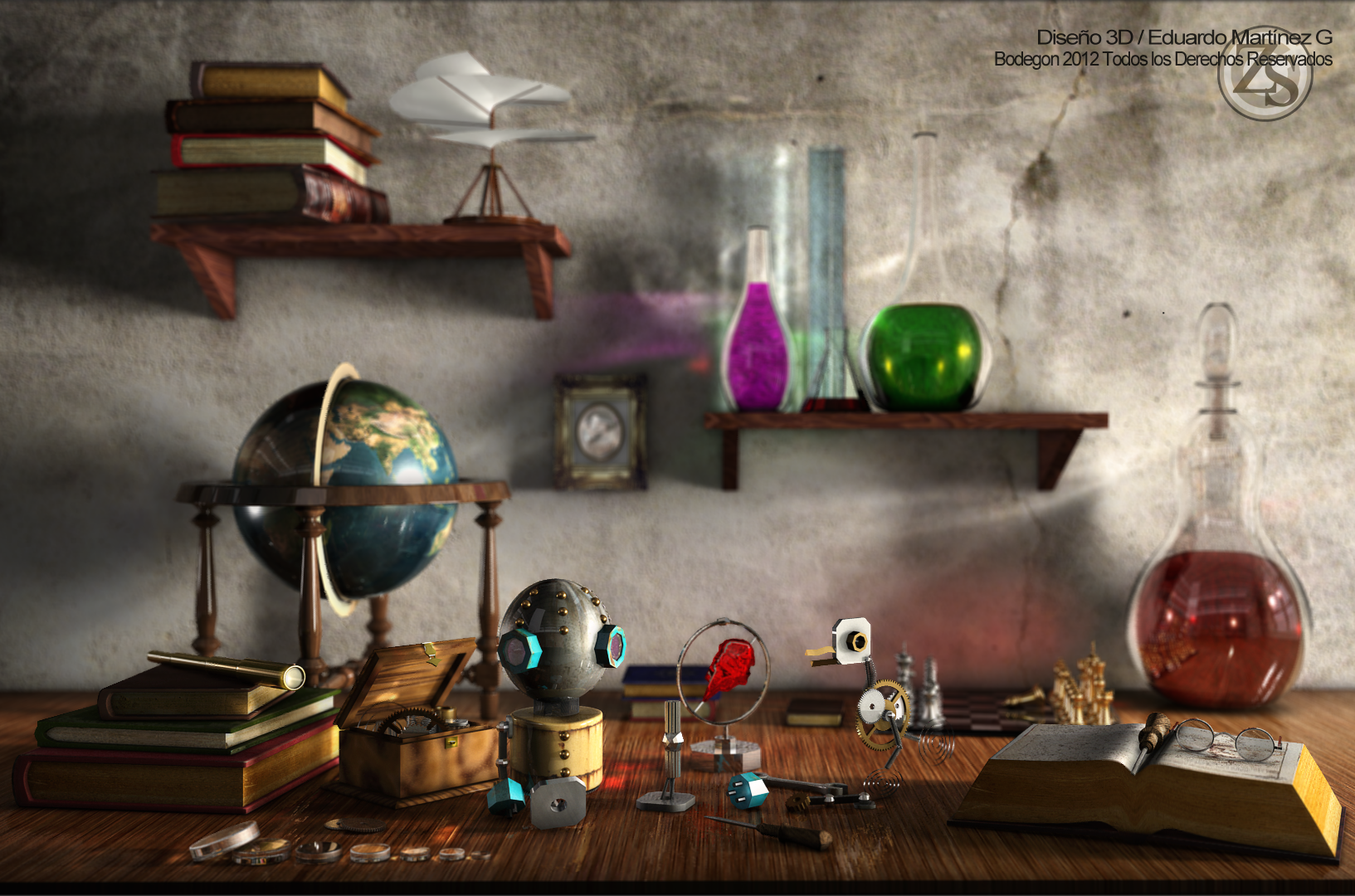 Hola, este es un bodegón que realice hace algún tiempo, fue elaborado en Maya y la postproducción fue hecha en Adobe Photoshop.
