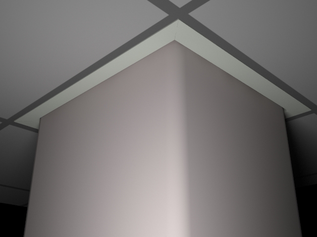 Hola, creo que deberías juntar el pilar en su parte superior, además de aplicar en los Edges un poco de chamfer. Te dejo una imagen donde agrego detalles en la parte superior. En cuanto a la iluminación y ya que es un lugar amplio, deberías encender luces superiores, las mismas que debes alinear, se ve que son traspasadas por líneas. Se debe bajar intensidad de luz que quema todavía. Saludos.