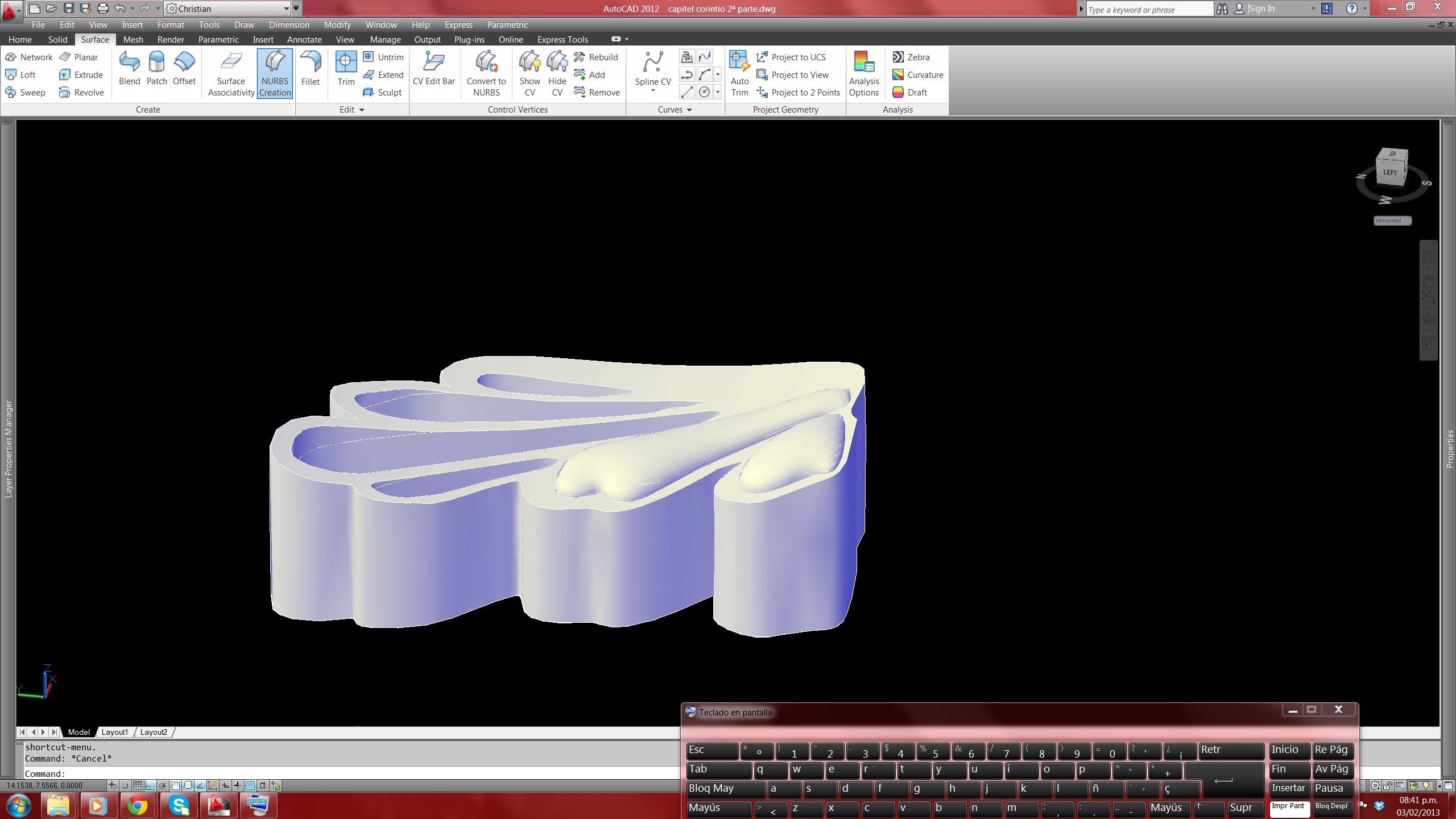 Hola, buenas noches, no sé si alguien me pueda ayudar con un problema que tengo al modelar un capitel corintio en AutoCAD 2012, el asunto en el cual estoy teniendo problemas es en las ramificaciones de la hojas, ya tengo la forma básica de las hojas, pero al estar modelando la pieza que voy a anexar empiezan los problemas, por que con el comando patch quiero crear las cuencas en ciertas secciones de las hojas y me crea la cuenca al revés de dónde quiero, se realiza un bulto en ligar de una cuenca y tampoco puedo convertirlo en un solido con el comando Sculpt para poder agregarlo a la hoja, les dejos unas imágenes para que se entienda más, y si alguien me puede ayudar se lo agradeceré mucho ya que es parte de mi trabajo.