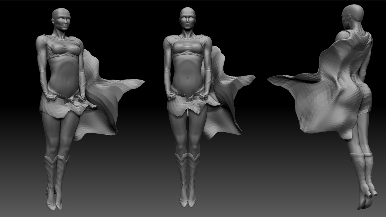 Si bien seguramente tiene miles de cosas por mejorar, estoy bastante conforme con el resultado al que llegué sobre todo teniendo en cuenta que es la primera vez que intentaba hacer un personaje femenino y traté de hacerlo teniendo en cuenta proporciones más bien reales para la mujer y no el estilo cómic donde suelen usarse proporciones exageradas para las cinturas y/o busto generalmente, los programas que usé para hacerlo fueron el Maya, ZBrush y Adobe Photoshop los dos primeros para el modelado y los tres en conjunto para el texturizado, el pelo se lo hice con una simulación dinámica con Maya Hair, espero sus millones de críticas y también algún que otro elogio perdido por ahí.