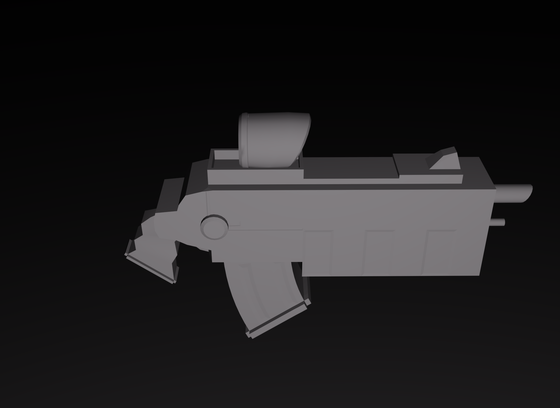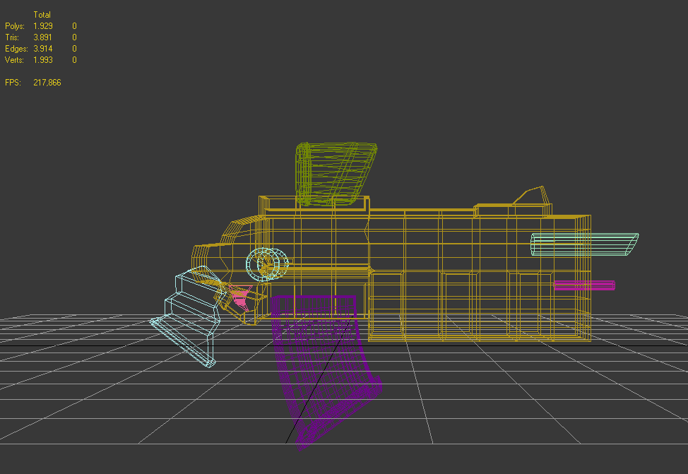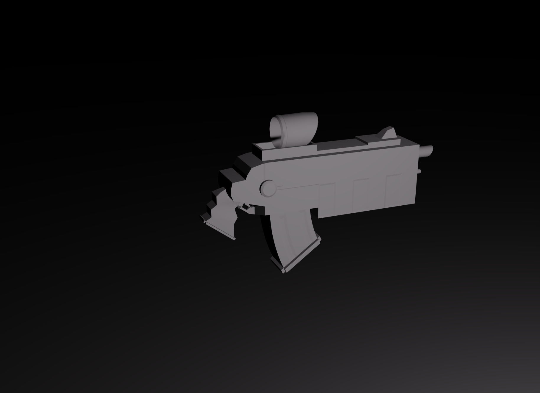 Esta tarde me he puesto y he hecho un modelo, es un arma (futurista), el modelo es sencillo y no está texturizado (el color simplemente).