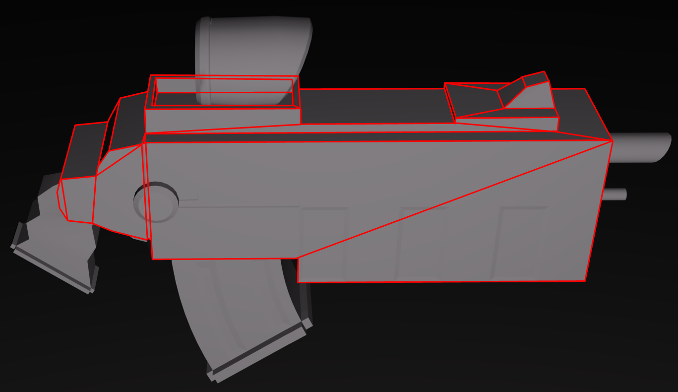 A ver cómo dijiste provienes del mundo de los videojuegos, por lo que sabrás que el modelado se hace en high, después se saca un mapa de normales y se proyecta sobre un modelo en low lo más low posible. De ahí lo de que te sobren tris, ya que o modelas el arma en high y entonces te faltaría mucho detalle o si es en low por que sea para un dispositivo pequeño que no tenga mucha resolución te sobran muchas líneas.