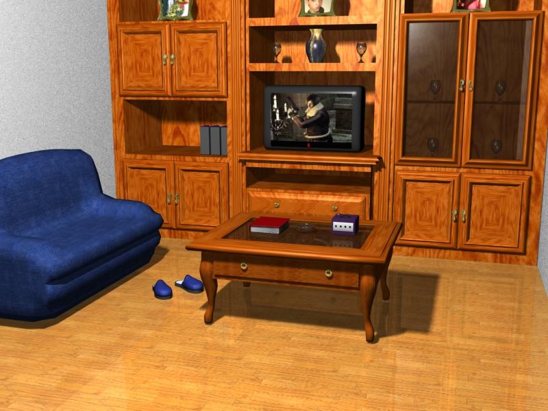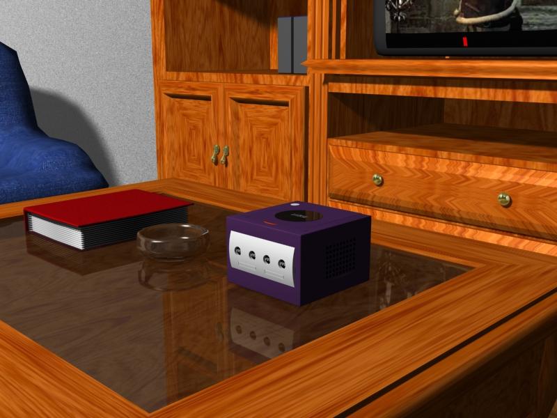Modelando, poco a poco voy aprendiendo, pero el texturizado y la iluminación no tengo mucha idea que digamos. La escena esta iluminada con una luz cenital (que, por cierto, mi pobre PC se tira bastante tiempo renderizando), probaré otras luces a ver qué tal. Sobre la escena vacía, pues la verdad es que, sí, pero yo solo quería hacer lo que es la consola, luego como la vi vacía, pues puse la carátula el mando, y la tele, ya probaré a meter la consola, en alguna otra escena que tenga por hay, y sobre la consola que está un poco chaparra, no te he entendido, pero la consola tiene un diseño en forma de cubo, no se te refieres a eso. Por cierto, también juego a la x box, aunque prefiero la GC.