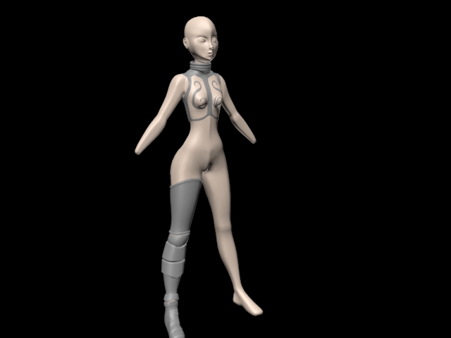 He estado siguiendo el famoso tutorial y de momento llevo la cabeza y el cuerpo, mañana empezaré con los accesorios. Utilicé editable poly en lugar de editable mesh y symmetry en lugar de mirror. Me perdí un par de veces, así que, seguramente esté llena de errores.
