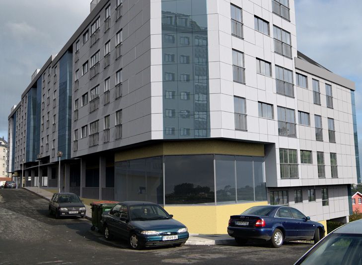 Jorge, no sé, puede que meta la pata, pero viendo la segunda imagen, me parece extraño que con el pedazo de highlight que tienen los coches, ese efecto de que le está pegando el sol de lleno.echo en falta ese mismo efecto en el edificio, quizás se lo puedas simular en Adobe Photoshop, no sé, pero me choca un poco la diferencia en esa zona.
