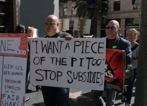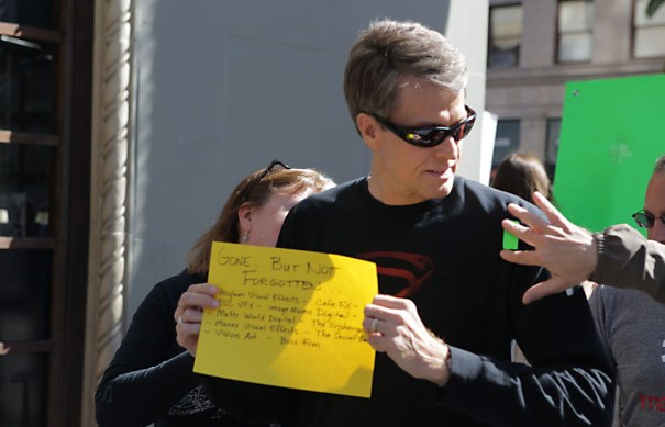 Mientras en la gala de los Oscar se daba el premio a La vida de Pi, fuera del teatro se manifestaban esos trabajadores que piden lo que ellos SE MERECEN. Algo apesta en la industria de Hollywood.