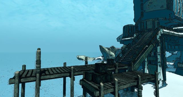 Buenas, gráficamente es de un estilo a Borderlands, No está mal, pero veo un poco borroso la tinta qué delimita los bordes de los objetos quizás definiría más estas líneas, aunque para gustos estna los colores y los sabores. Un saludo.