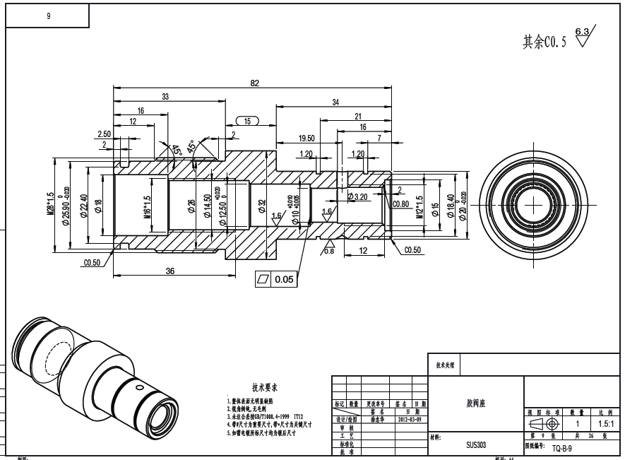 Ah. La metrica de las roscas no las dibujo, si pone, por ejemplo, M12 solo hago un cilindro de 12 de diámetro.