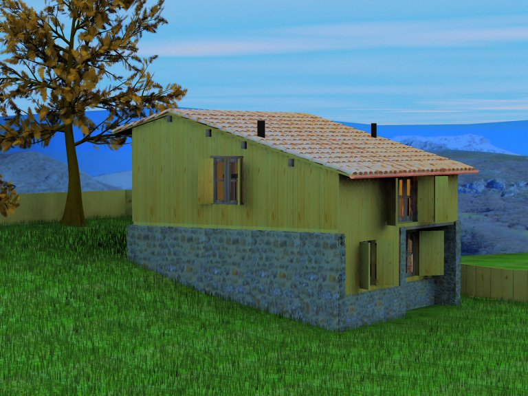El fondo pondría alguna imagen más realista y con más vida para qué la casa quedase más integrada en la escena. (sobre todo en los renders exteriores).