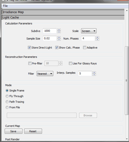 Buenas tardes a todos. Llevo un tiempo siguiendo vuestro foro y hoy me he decidido a escribir. Trabajo con Rhinoceros 4.0 sr9 y soy un novato con el Vray. Me gustaría mejorar mis renders y para eso os pido ayuda. Acabo de hacer un modelo básico, cuatro paredes, un par de muebles y unas ventanas, le añadí una luz Vray Sun ligada al entorno y luces rectangulares en cada ventana, cada mueble con su material correspondiente, paredes blancas y suelo de madera. El resultado es este: