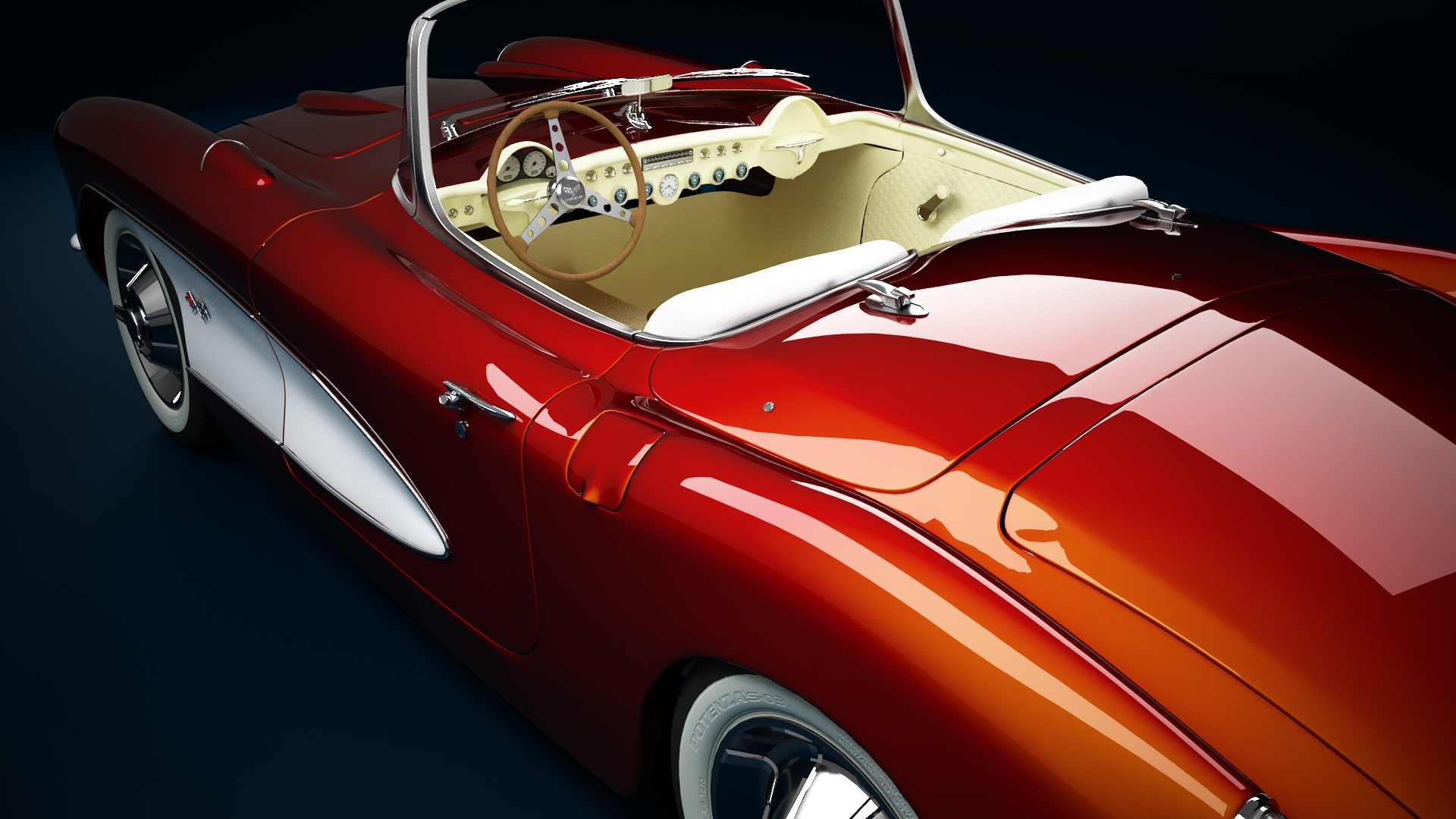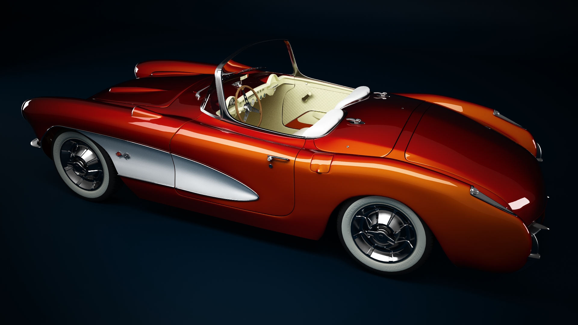 Primeros render, de un Corvette del 56 un poco a mi bola. Conejos bienvenidos.