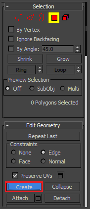 1. Ve al subobject poly, baja hasta la persiana edit geometry y selecciona la opción create.