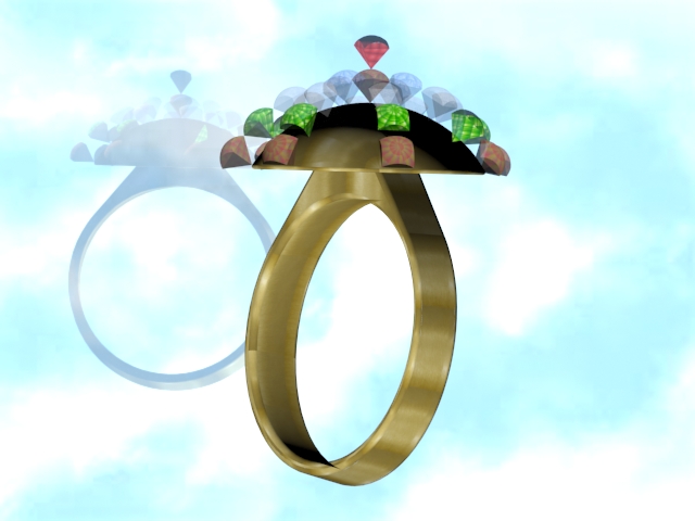 No consigo que el reflejo del anillo se vea claro como en un espejo, sologro que se vea difuminado como en esta imagen