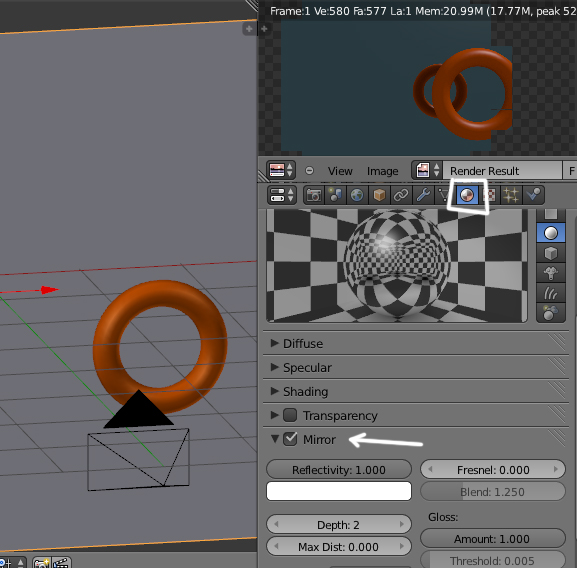 Si kereis os envio la fotografía, tengo de fondo de background el cielo, un bloque en la escena con material como reflejante Flat Mirror y un anillo que se refleja en el espejo anterior, pero el anillo en el bloque espejo se ve difuminado, no se ve claro. Gracias por los links, los mirare atentamente