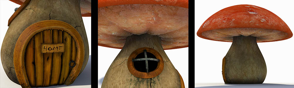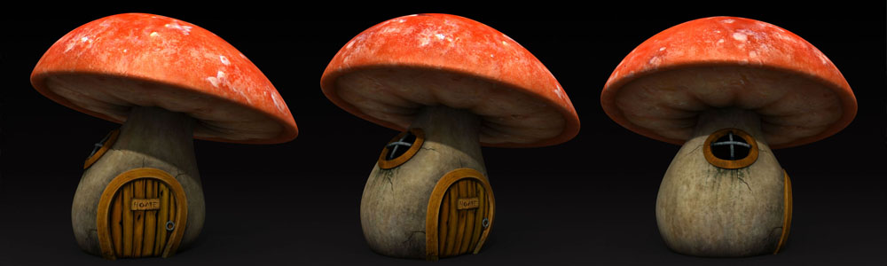 Os presento este pequeño Mushrom en 3D, una casa hongo cartoon realizada en 3d Max y renderizado con Mental Ray. Las texturas están realizadas con Adobe Photoshop.