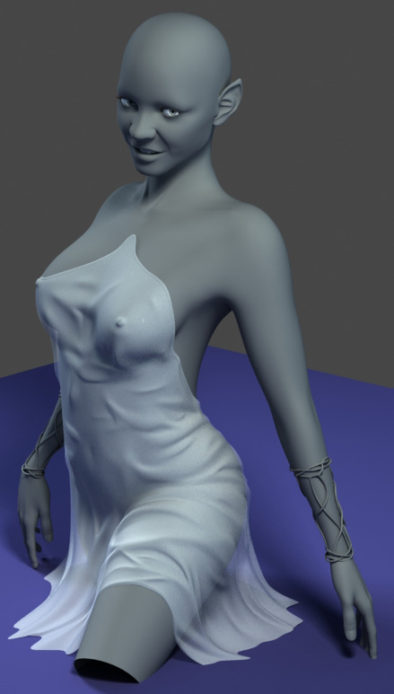 Respecto a las críticas que más o menos se repiten. Tema barriga, costillas y pierna, toda esa zona ira semi tapada por la ropa, que será una especie de toga mojada, con lo que se le semitransparentara. Por eso no le he modelado las costillas, por ejemplo, y por eso esa zona no me preocupa tanto, por que luego estará más tapada. La barriga quizá si que la arreglo un poco más por que se vería en las partes que se peguen al cuerpo, pero lo de las costillas, por ejemplo, no lo voy a hacer porque no se verian.