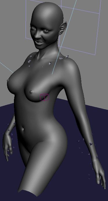 Procura no olbidarte de modelar el suelo vajo el nivel del agua, este deberá verse también. Al tela que cubre pezón derecho aún lo veo raro. ¿piensas tocarlo? (mas que nada para no seguir dando la lata con eso).