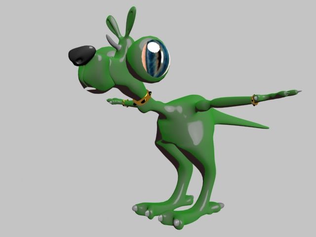 Aquí van algunas actualizaciones, no he tenido mucho tiempo para caerle, ahora quiero texturizarlo si alguien sabe dónde encontrar tutoriales buenos del Bodypaint le agradecería la ayuda y del personaje sigan opinando a ver qué sale, tiene que parecer algo sonso, simpático, extraño, de otro mundo, nos vemos.