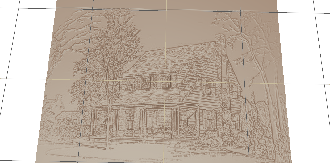 Usaría un plano (igual que la escala del bitmap) con muchas subdivisiones (o se las doy a mano o le aplico un turboSmooth), y le aplicaría después un modificador displace para desplazar los vértices usando una textura, en este caso la casa, le daría la altura deseada al desplazamiento, miraría si faltan subdivisiones por temas de detalles, y cuando esté a ojoporciento más o menos bien lo remataría aplicándole un TurboSmooth para suavizar, y ya puedes colapsar a Edit Poly o exportar.