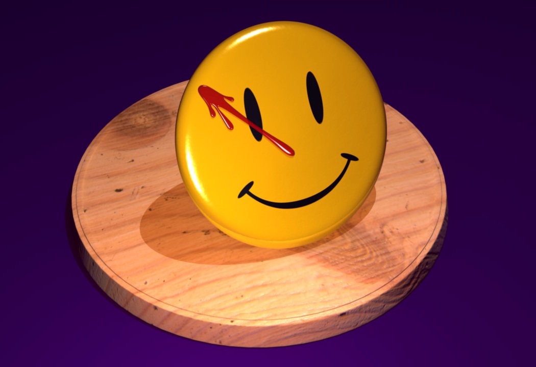 Hola a todos. Aquí os dejo mi último trabajo, la chapita del Comediante, de Watchmen. Me gustaría mejorar la iluminación y la madera.