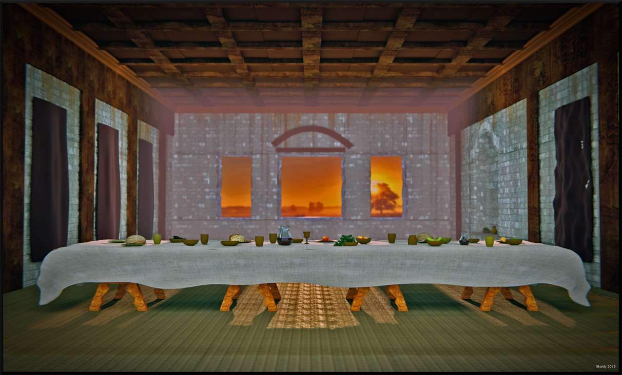 Buenas. Aprovechando estas fechas y tomando como referencia La Última cena de Leonardo, pues se me ha ocurrido esto. Modelado Blender, render Cycles.