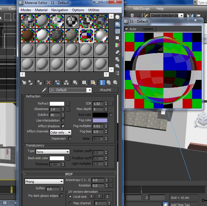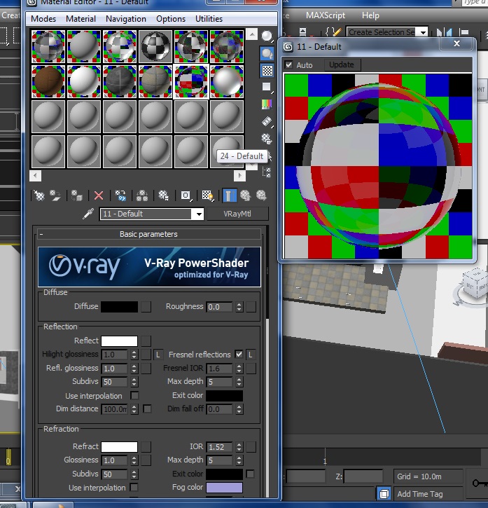 Tengo una duda enorme, yo uso Vray y 3DS Max el caso es que tengo un problema ya que estoy haciendo un especie de marco de cristal para una terraza y todo va bien la transparencia y el material esta correcto, pero al momento de renderizar por el angul de la cámara una parte del vidrio del marco debe de ser trasnparente.