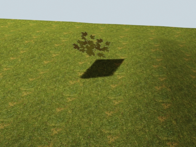 El siguiente ejemplo está hecho en dos segundos con Vray y no es más que un plano con una textura de una hoja en blanco y negro sobre un plano en el mapa opacity de un material standard de 3ds Max. La iluminación es un Vray Sun y la vista una Vray camera.