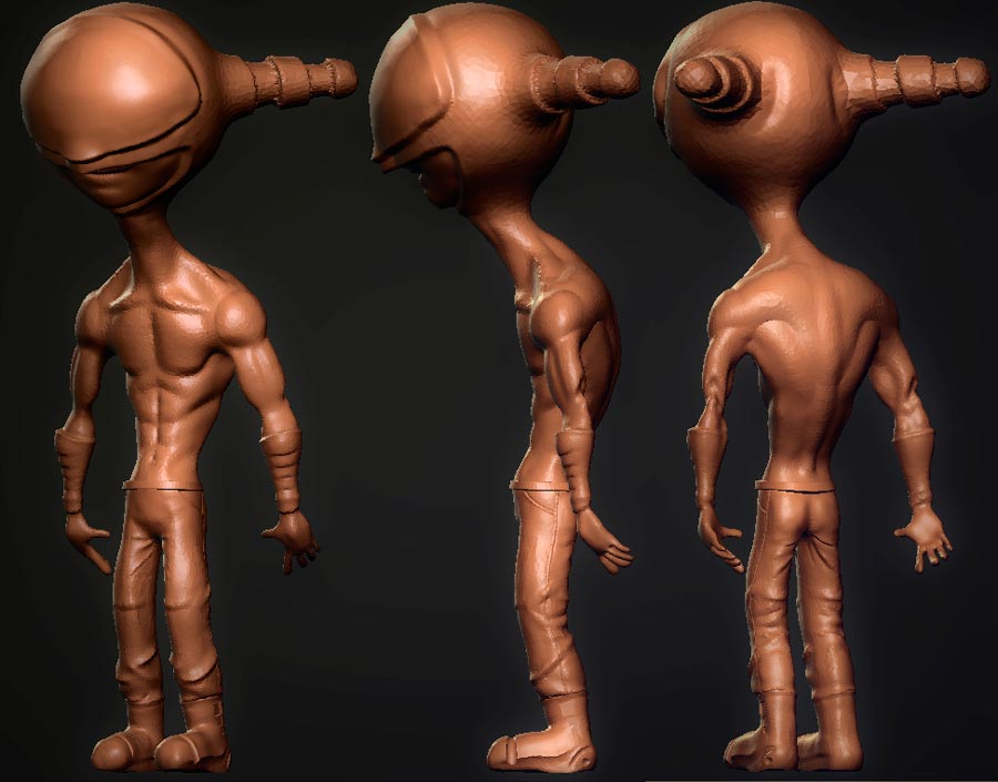 Hola, la verdad me gusta mucho, le veo gracia y carisma. Lo único que ha modo personal cambiaría son la parte inferior de las botas. Es como que sigue el carácter orgánico del personaje, pero es la parte inferior de todo el modelo, la parte que lo sustenta y debería ser la más rígida a mi parecer. Lo que yo le modificaría sería la base con una terminación más recta, como acompañando el apoyo del piso. De esa forma no parecería una media, lo que recomiendo es buscar un calzado de referencia para inspirarse en su base, zuela etc y probar cómo queda. Es simplemente una opinión personal. Lo demás Excelente.
