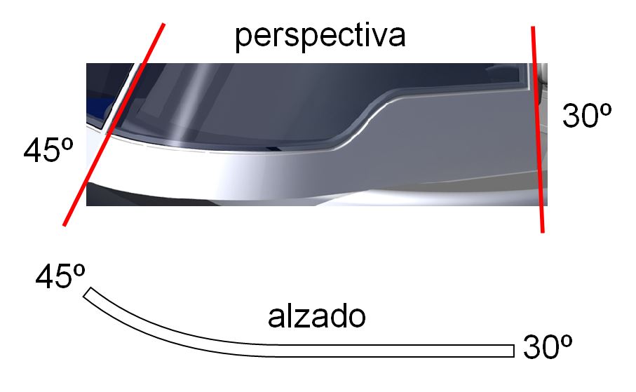 Pues no es eso, el ángulo no está hacía el inicio de la extrusión, sino hacia dentro, y también está la forma esa como en pendiente que hay en la cara recta, antes de llegar a la curva, en programas como strada 3D se usa una herramienta qué hace más o menos como la de barrido en este programa, asignando croquis (por pasos intermedios) por dónde se va a dirigir la extrusión. Gracias por el interés de todos modos. Saludos