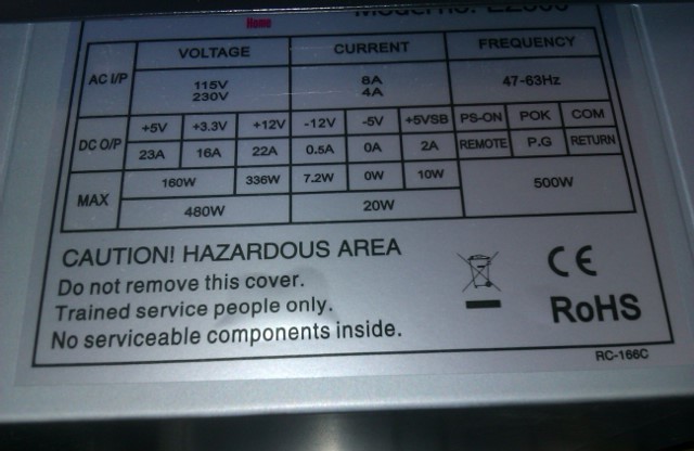 Y la fuente de alimentación es una B-Move EZ500 con el siguiente cuadro: