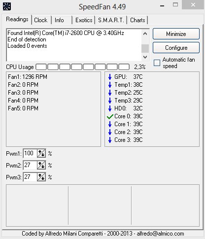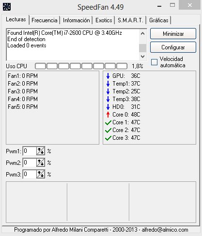 Primero instalo el SpeedFan 4.49 el cual me reconoce de forma automática los siguientes dispositivos: