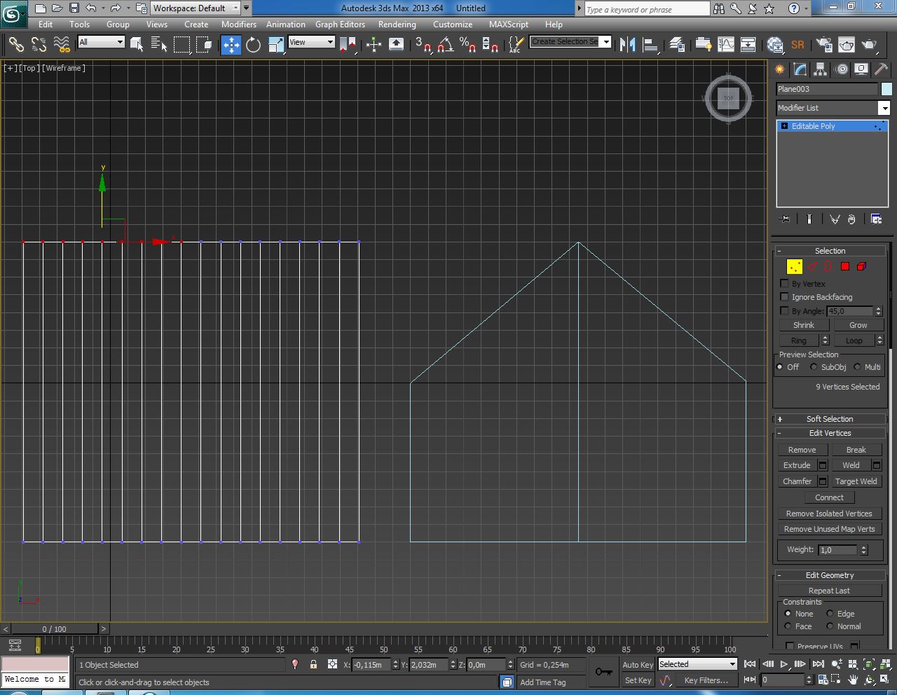 Hola amigos, tengo un problema. Quiero mover varios vértices (alineados horizontalmente) en diagonal como pueden apreciar en la siguiente captura: