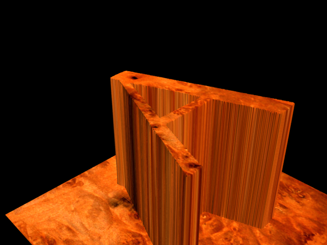Como podéis ver en la imagen que añado, la textura no se aplica bien a los laterales dé la letra, he intentado todas las opciones de UVM Mapping y no se inmuta, siempre queda igual.