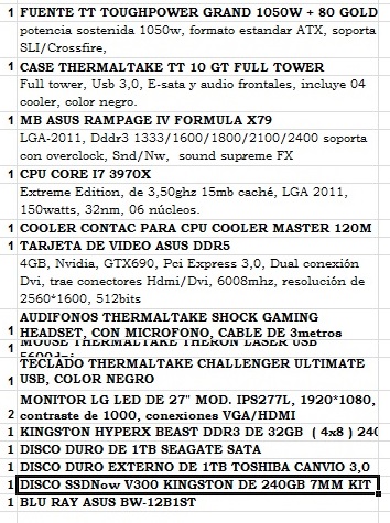 En este caso es esta configuración que estoy montando para una estación nueva de trabajo me dedico hacer renders y videos con Vray y mensaje producción con after y Premier va a ser para uso intensivo.