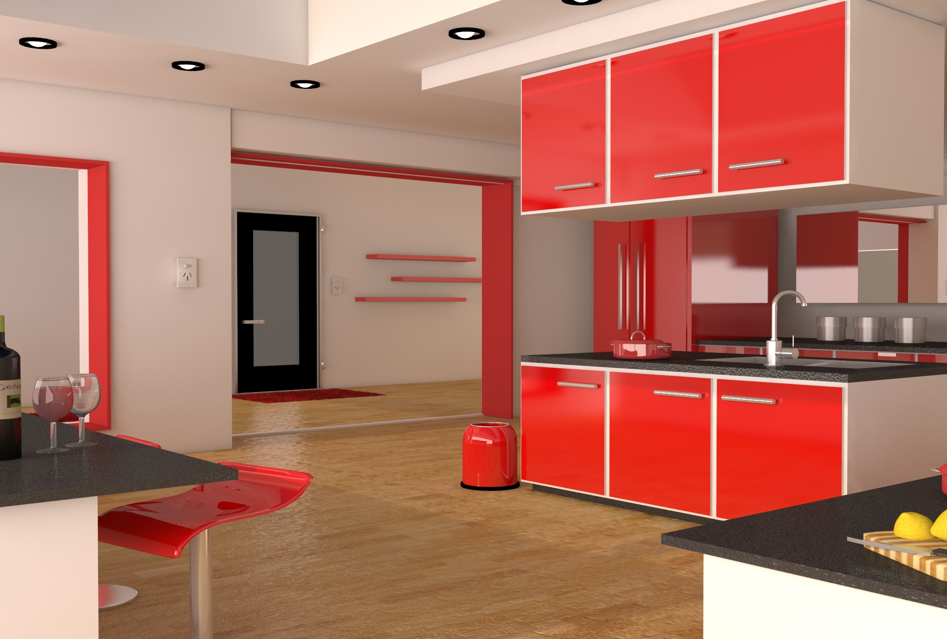 Hola Agus99, te está quedando muy bueno. Al ver la escena con tantos materiales con reflectividad, me hace suponer que tienes un buen pc. Lo que te quería comentar es sobre el listón en el suelo (el que está en el marco, para acceder al pasillo), alguien se podría tropezar con él.