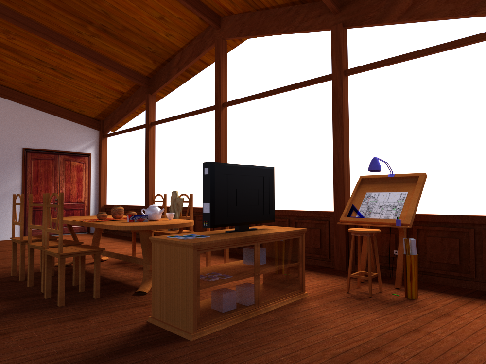 Hola a todos les presento mi trabajo vista panorámica, justamente lo que falto fue la vista panorámica, me canse de los tiempos de render y lo dejo así. Blender + Yafaray, saludos.
