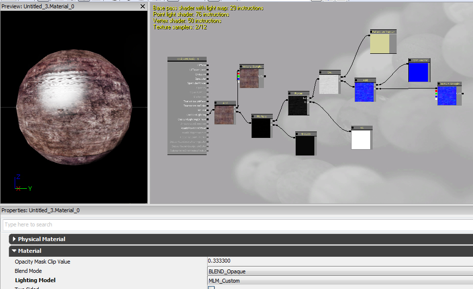 Parece que tiene en cuenta la posición de la luz para el brillo, pero por otra parte las caras que no reciben la luz quedan negras completamente. ¿esto se debe al customlighting? Por otra parte, si lo dejo en Phong y pongo el Diffuse map, Specular y normal me he dado cuenta que, aunque borre la fuente de luz sigue funcionando el Specular. En teoría no debería por lo que comente al principio del mensaje ¿o me equivoco? Lo que pasa es que, a mi cuando me surgió la duda lo hice en base a 3dsMax y a lo mejor nada de esto es necesario en UDK ¿no? En fin, un lío.